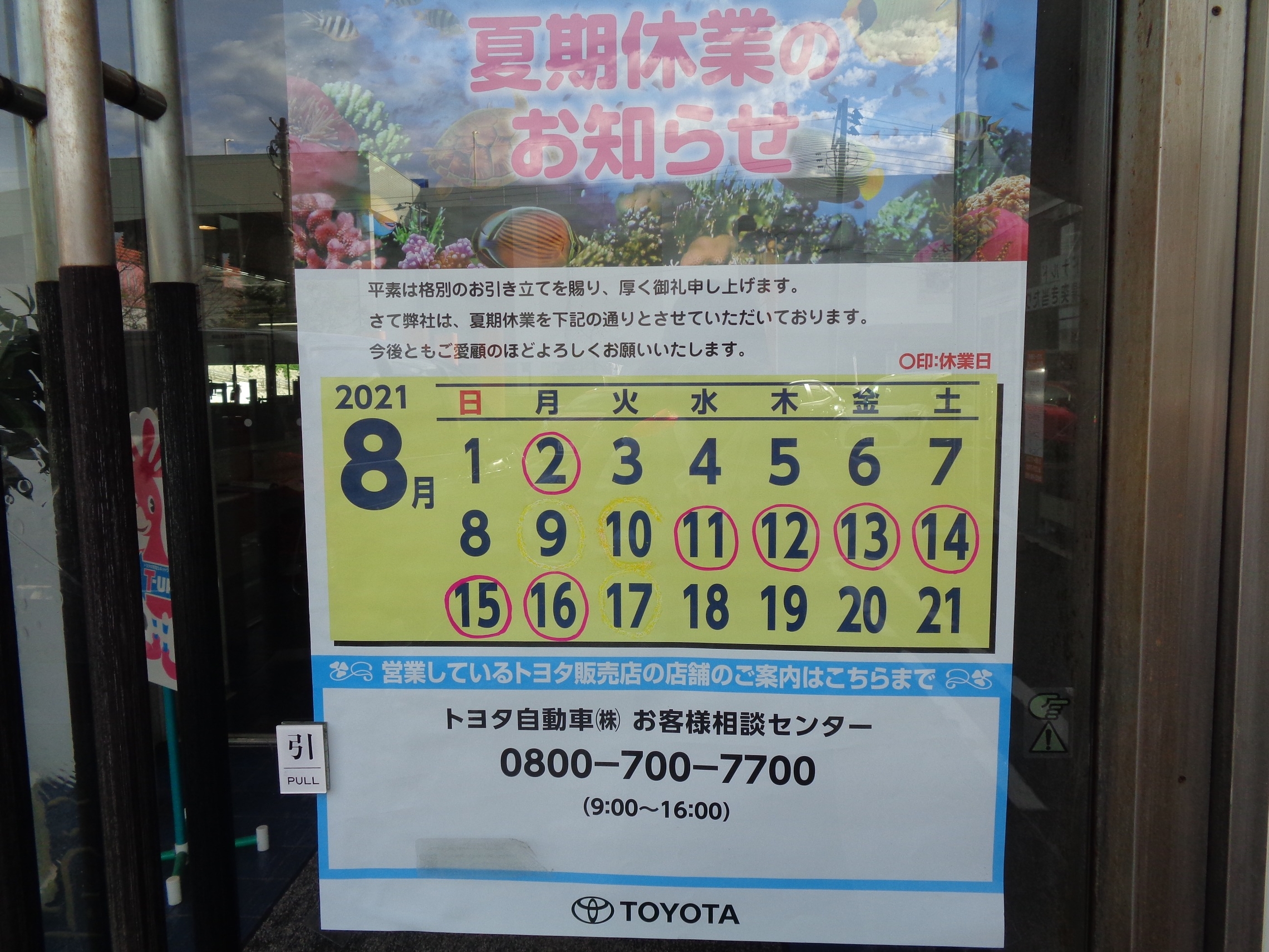 くれぐれも安全運転で事故の無い連休をお過ごしください(__)